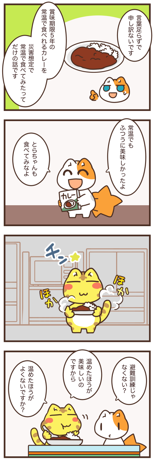 常温で食べれるカレーを常温で食べたっていうだけですね。
